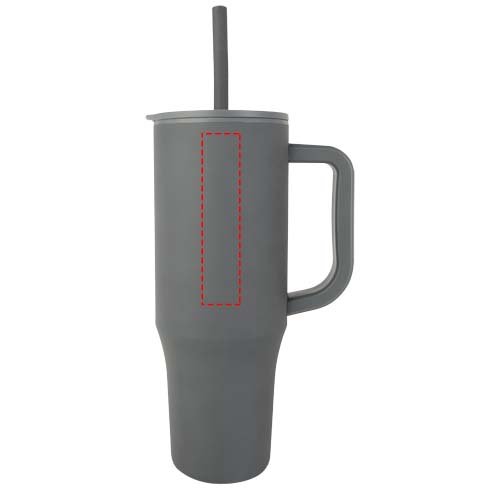 Tumbler met een duurzame buitenwand van RCS-gecertificeerd gerecycled roestvrij staal en een binnenwand van kunststof. Houdt dranken 12 uur koud of 12 uur warm. Voorzien van een geïntegreerd food-grade siliconen rietje en een spatbestendig opdrukdeksel voor een prettige drinkervaring. Deze tumbler is ook geschikt voor warme dranken, maar het wordt afgeraden deze via het rietje te drinken. Laat de drank eerst afkoelen door het deksel te verwijderen voordat je deze consumeert. Inhoudscapaciteit: 900 ml. Alleen met de hand afwassen.