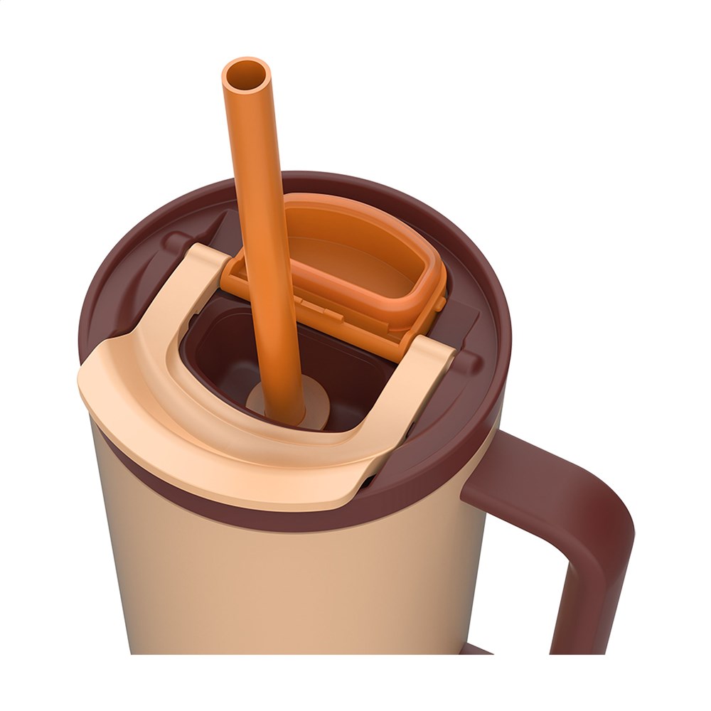 Grote, dubbelwandige vacuümgeïsoleerde tumbler van 18/8 RVS van het merk Kambukka® • kunststof deksel met telescopisch rietje met cover en afsluitbare drinkopening • houdt koude dranken zoals water, smoothies, milkshakes en andere dranken meer dan 24 uur lang koel • excellente kwaliteit • BPA-vrij • royale, kunststof handgreep • geschikt voor links- en rechtshandig gebruik • antislipbodem • past in de meeste bekerhouders • 100% lekvrij (in gesloten positie) • de beker is vaatwasserbestendig - voor behoud van de opdruk wordt met de hand afwassen aanbevolen • het deksel en de demontabele onderdelen zijn niet vaatwasserbestendig • inhoud 950 ml. VOORRAAD INFORMATIE: Tot 1.000 stuks beschikbaar binnen 6 dagen. Uitzonderingen voorbehouden.