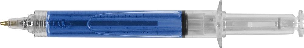 Kunststof balpen, zwartschrijvend, model 'injectiespuit', met gekleurde vloeistof.meer