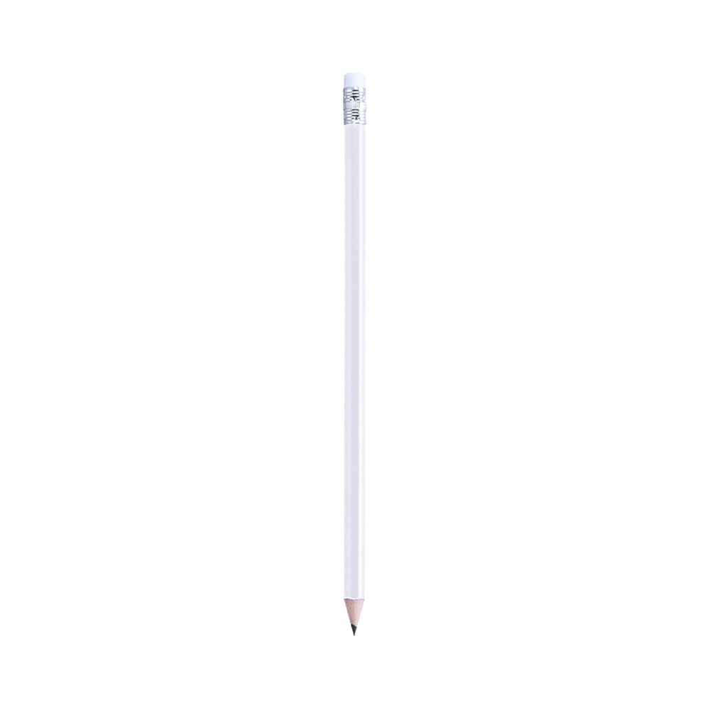 Houten potlood met glanzende afwerking. Met ronde loop en wit gekleurd rubber. Verkrijgbaar in...meer