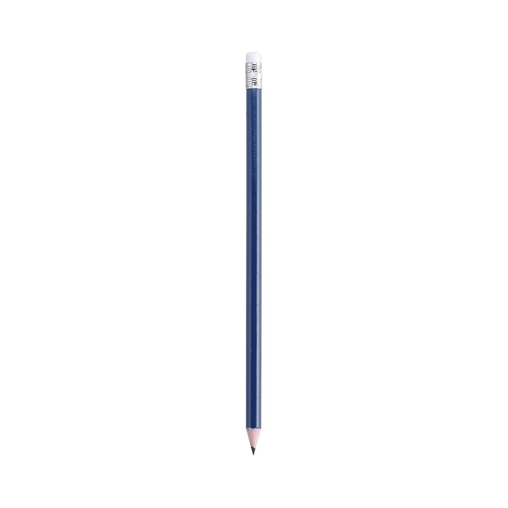Houten potlood met glanzende afwerking. Met ronde loop en wit gekleurd rubber. Verkrijgbaar in een groot aantal kleuren. Zwarte kleurige stift en geslepen punt.