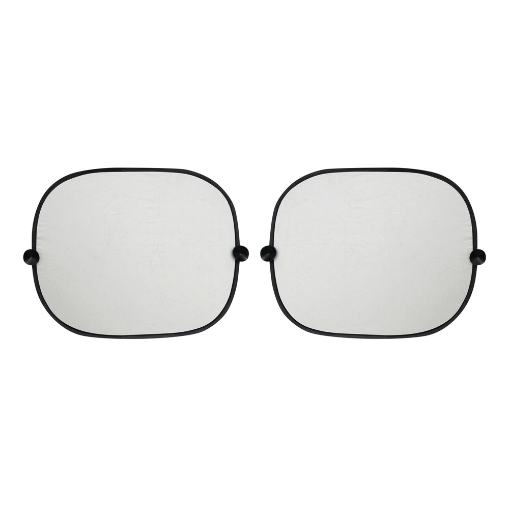 Auto-zonnescherm-set SUN GUARD: bestaande uit 2 stuks, geschikt voor de zijramen, zilveren oppervlakte met zwarte achterkant, kan klein worden opgevouwen, inclusief opbergtasje en 4 zuignappen voor bevestiging.