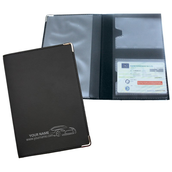 Rijbewijsetui skai met zilv. hoekjes, zwart