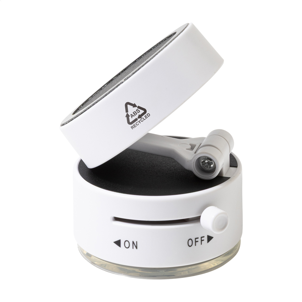 Gerecycleerde ABS magnetische auto mobiele houder met vacuüm zuig armatuur. Inclusief zelfklevende metalen ring voor telefoons zonder magnetisch oppervlak.