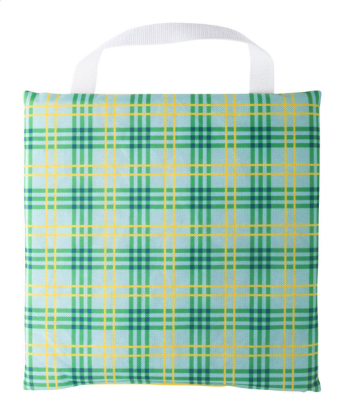 Custom made, non-woven stadionkussen met handvat. Met all-over sublimatiedruk. MOQ: 50 stuks.
