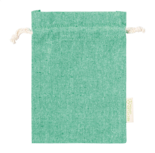 Herbruikbare tas van gerecycled katoen met trekkoordsluiting. 100% gerecycled katoen, 120 g/m².