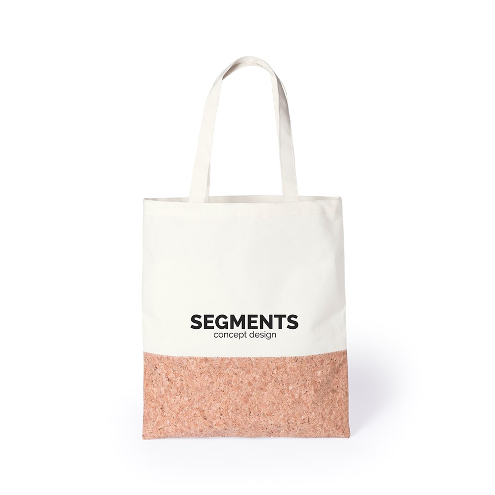 Tas van katoen en kurk. Met lange hengsels, gestikte afwerking en gewicht tot 8 kg.