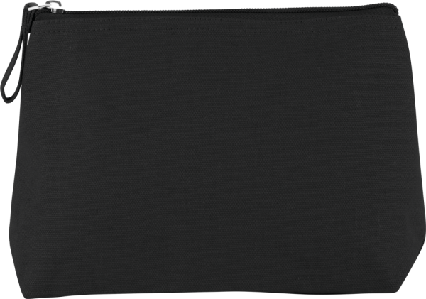 Toilettas met plooi gemaakt van katoenen canvas gelamineerd met polyurethaan. Rits in dezelfde kleur als het tasje.