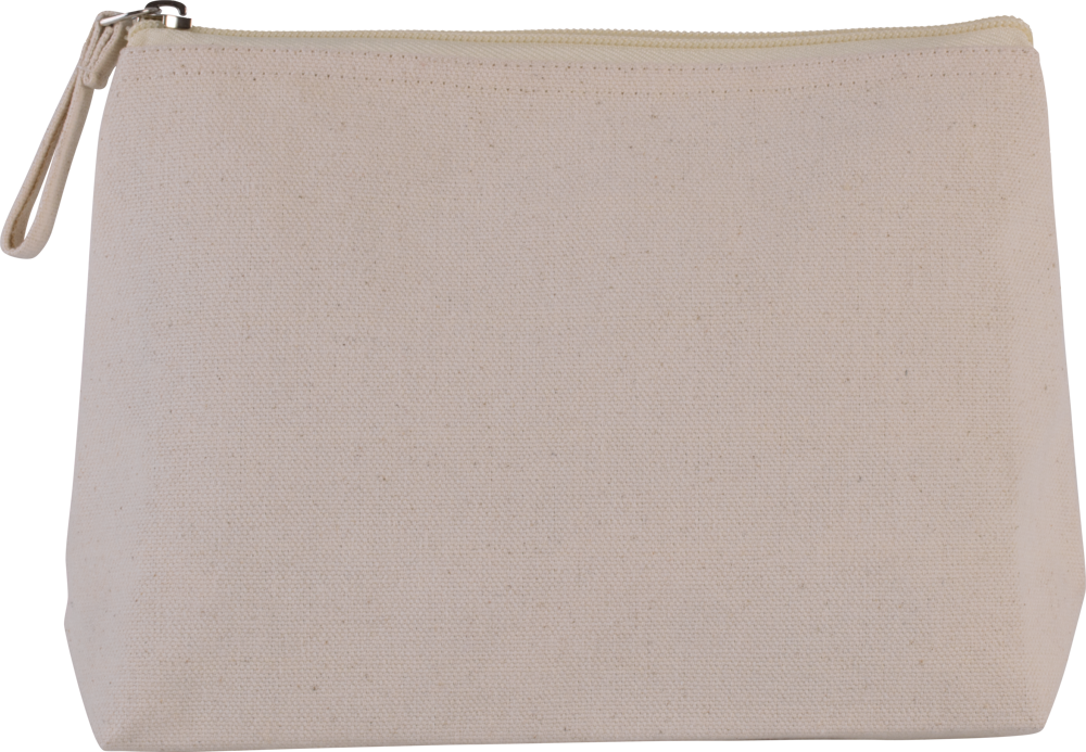 Toilettas met plooi gemaakt van katoenen canvas gelamineerd met polyurethaan. Rits in dezelfde kleur als het tasje.