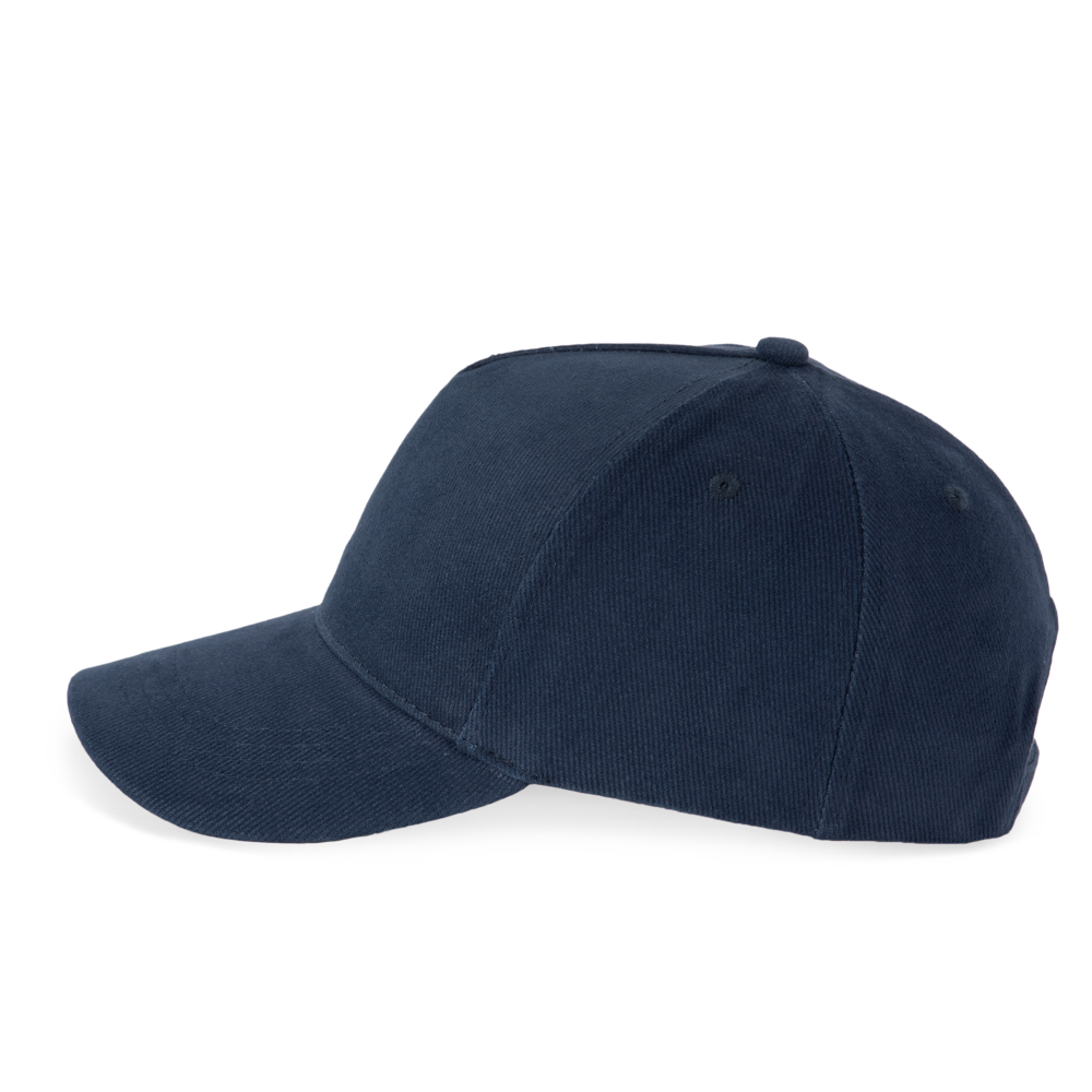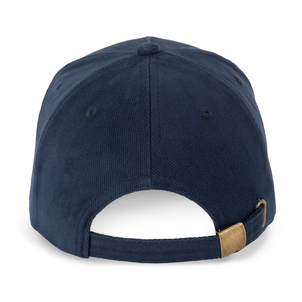 100% katoen. Dik gekamd katoen. Pet met 5 panelen. Sluiting aan de achterkant met metalen gesp.