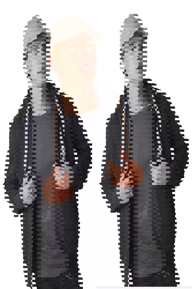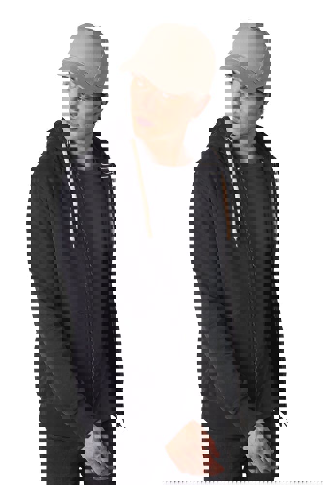 100% zwaar geborsteld katoen. Verstelbare klittenbandsluiting.