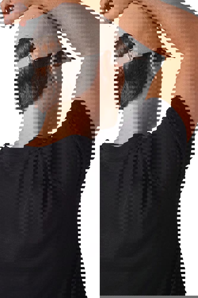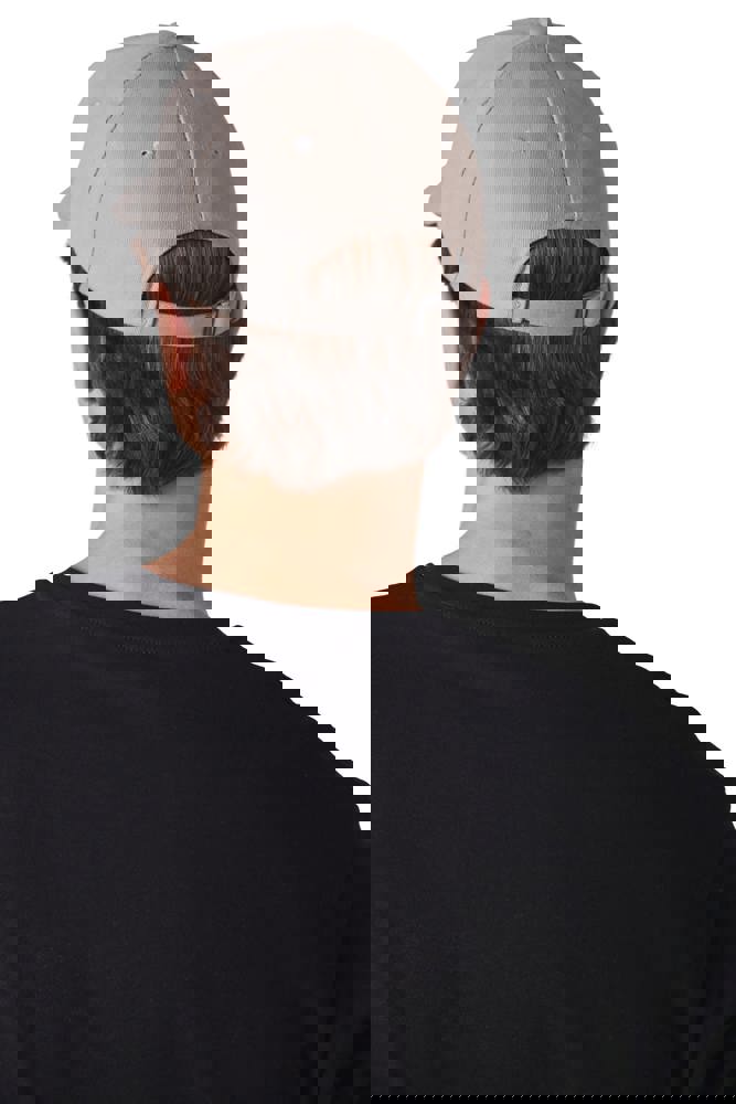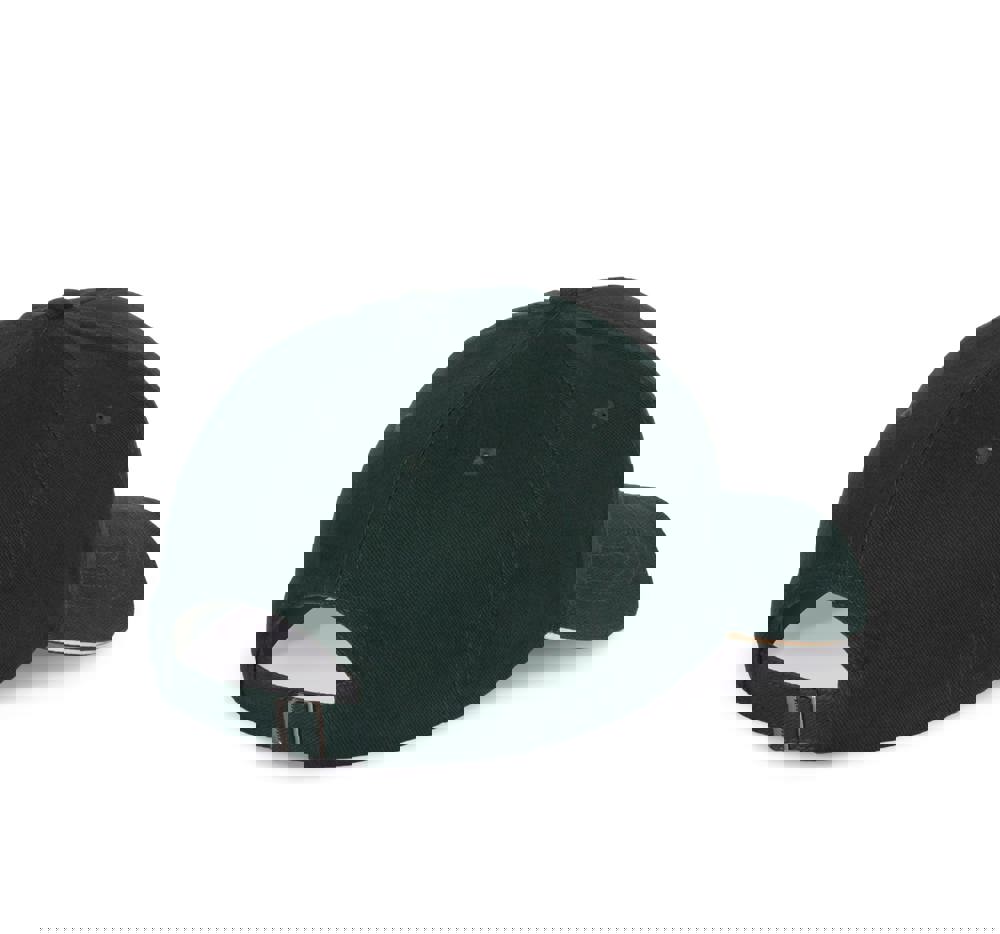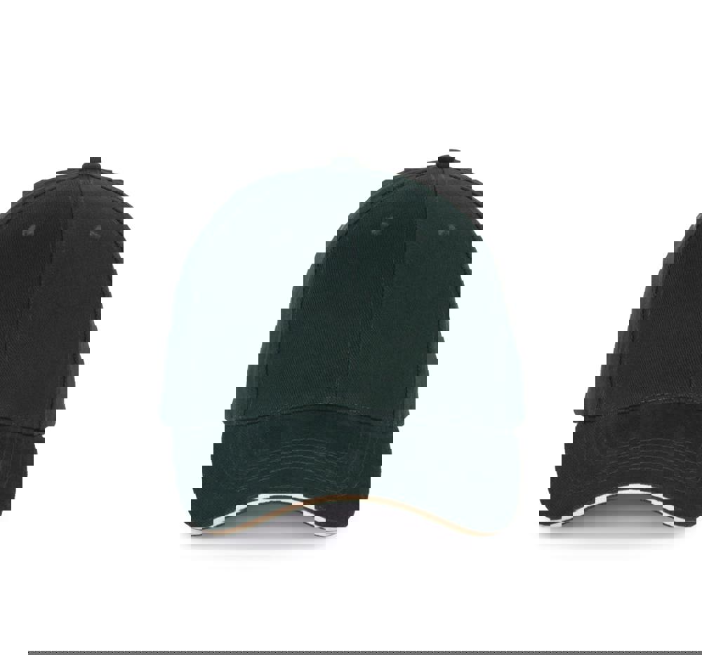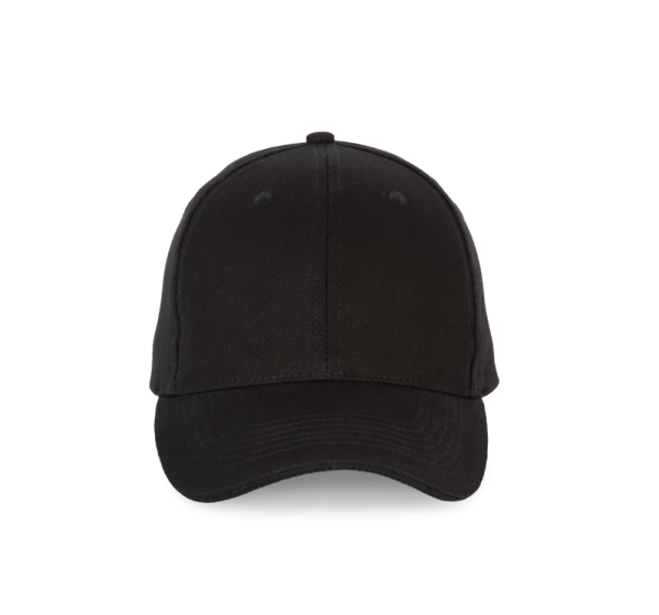 100% katoen. Pet met 6 panelen en contrasterende bies. Verstelbare sluiting met metalen gesp en zelfblokkerende lus.