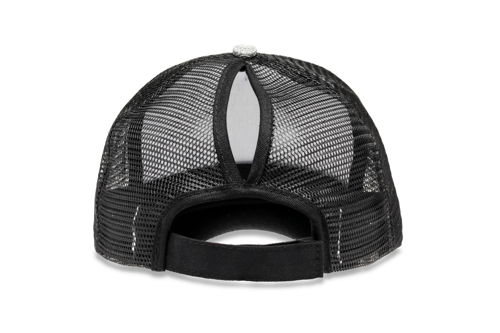100% polyester met 100% katoen onder de zonneklep. 5 panelen: 4 van mesh en 1 van stof. Versterkt voorpaneel. Verstelbare maat dankzij de klittenbandsluiting. Gebogen zonneklep van stof. Ruimte voor een paardenstaart achteraan.