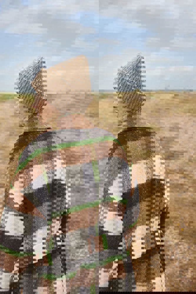 B330R - Grof gebreide muts met patch