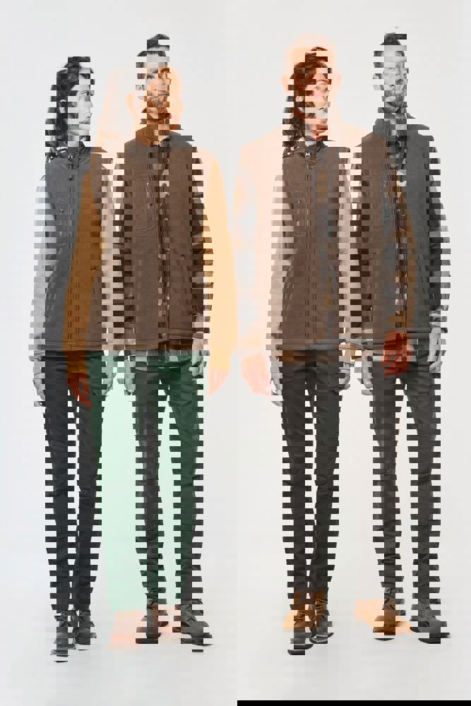 100% polyester. Gelaagde stof van fleece en sherpa. Rechte snit. 2 ritszakken met bies en ritstrekker aan de voorkant. 1 afgerond borstzakje met rits en ritstrekker met dubbel toon-op-toon stiksel rechts (bij het dragen). Ritssluiting met ritstrekker. Met sherpa gevoerde kraag en ophanglus. Overlocksteek aan de mouwopeningen en onderaan het kledingstuk. Afneembaar merklabel.