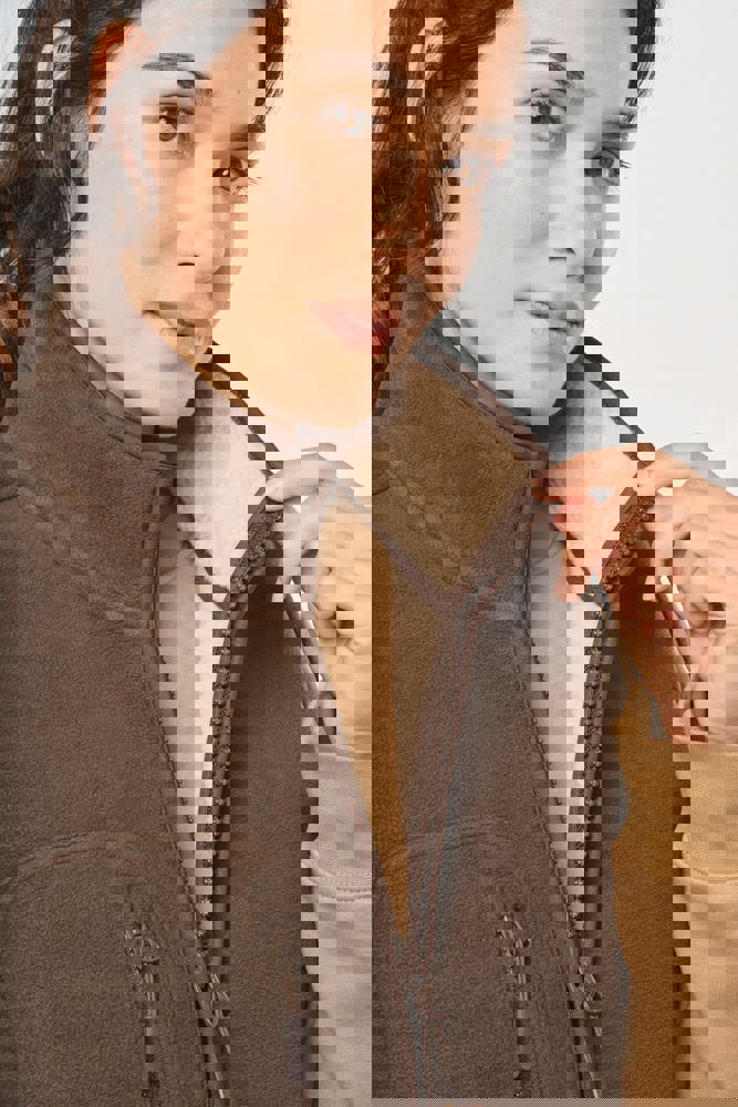 100% polyester. Gelaagde stof van fleece en sherpa. Rechte snit. 2 ritszakken met bies en...meer