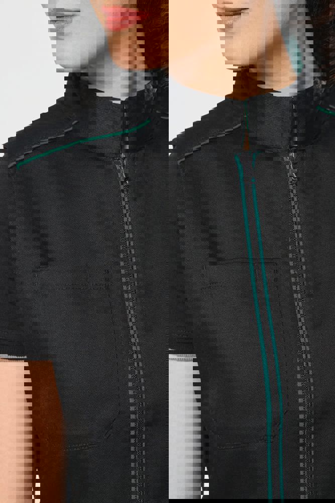 65% polyester / 35% katoen. Wasbaar op 60 °C. 2 ritszakken aan de zijkant. 1 open borstzakje...meer