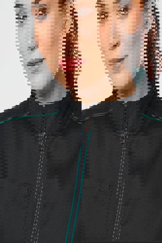 65% polyester / 35% katoen. Wasbaar op 60 °C. 2 ritszakken aan de zijkant. 1 open borstzakje rechts met penhouder. 1 naametiket aan de binnenkant. Ritssluiting op de voorkant en contrasterende zakken. Contrasterende bies op de schouders. Contrasterende binnenkant kraag met ophanglus. 2 ruimtesplitten op de achterkant. Ideaal voor dagelijks gebruik.