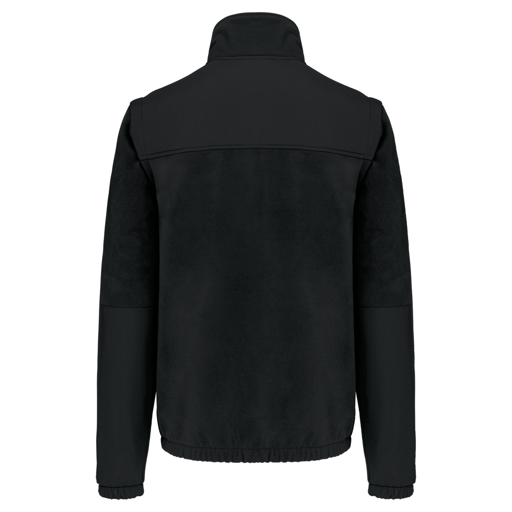 100% polyester. Buitenkant: fleece 100% polyester 400 g/m². Versteviging 100% polyester taslon met acrylcoating. Voering binnenkant mouwen polyester 210T. 2-in-1-fleecejas. 2 ritszakken aan de voorkant en 1 borstzak met klep en klittenband. Toon op toon inzetstukken aan de voor- en achterkant en onderarmen. Eenvoudige personalisatie voor- en achteraan. Afneembare mouwen met voering van polyester, voor meer comfort. Elastische mouw- en jasboorden.