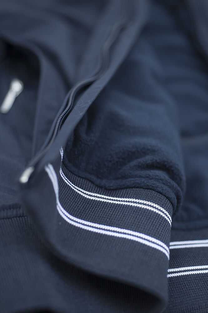 Moderne, unisex jas met fleece voering gemaakt van hoogwaardig materiaal met PU-coating voor bescherming tegen wind en water. De jas heeft een eigentijdse uitstraling dankzij de moderne pasvorm en het hedendaagse design met contrasterende elementen aan de binnenkant van de mouwen en onderaan de jas. De jas is voorzien van twee steekzakken met daaronder zakken met rits en een binnenzak met rits. De jas is gemakkelijk te veredelen dankzij de drukkersrits aan de binnenzijde.