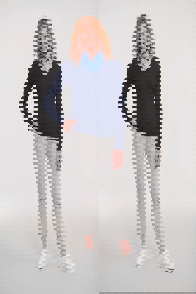 RU710F - Ladies' V-neck Knitted Pullover