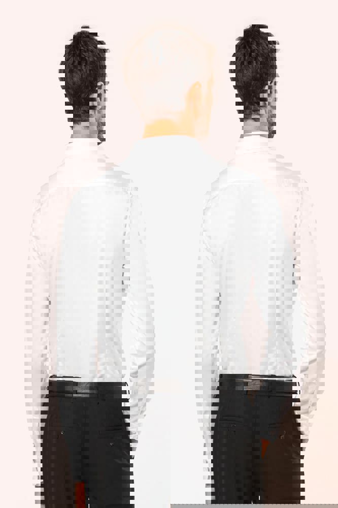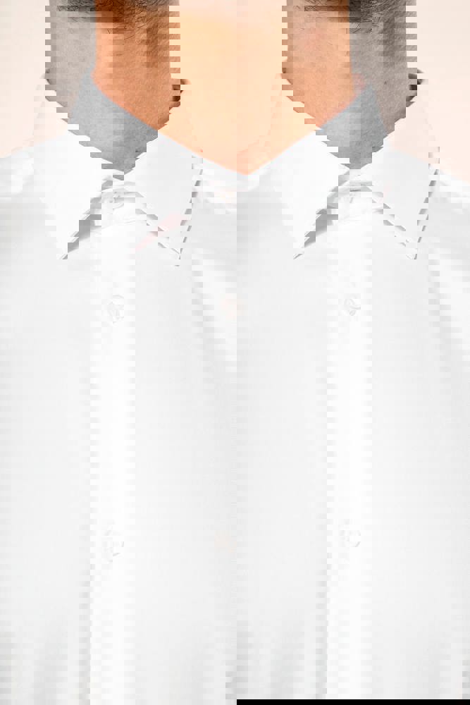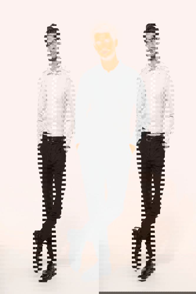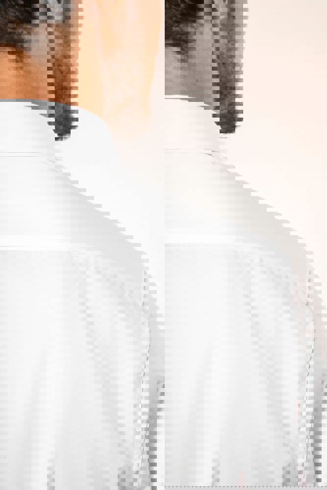 100% katoen. Twillstof. Gemakkelijk in onderhoud (EasyCare-behandeling). Dubbel getwijnd garen 80 x 2 van topkwaliteit. Italiaanse kraag met uitneembare baleinen. Paarlemoeren knoopjes. Inzetsel aan de bovenkant van de rug. 2 plooien op de achterkant. Fitted pasvorm. Manchetten met 2 knopen met afgeronde hoeken. Verstevigende driehoekjes op de zijkanten. Geen merklabel, maar enkel een maatlabel voor eenvoudige personalisatie.