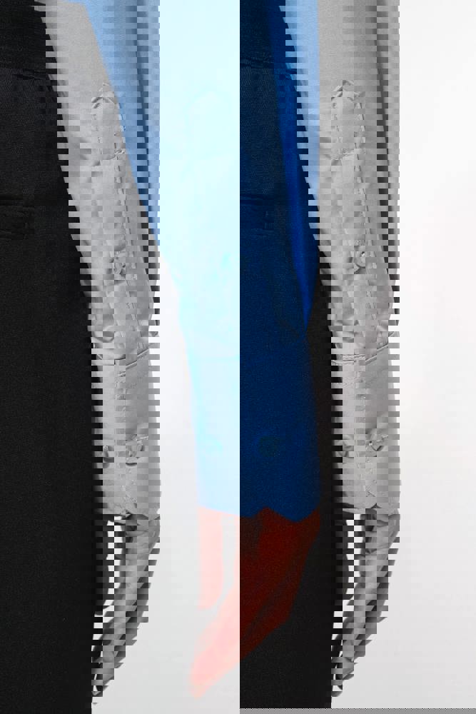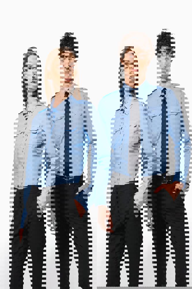 65% polyester / 35% popelinekatoen. Gemakkelijk in onderhoud (EasyCare-behandeling). Toon-op-toon knopen. 2 borstzakken met klep, waarvan aan de linkerkant een met plaats voor een pen. Knooplijst op de schouders om galons te bevestigen (epauletten niet meegeleverd). Regelbare knoopmanchetten.