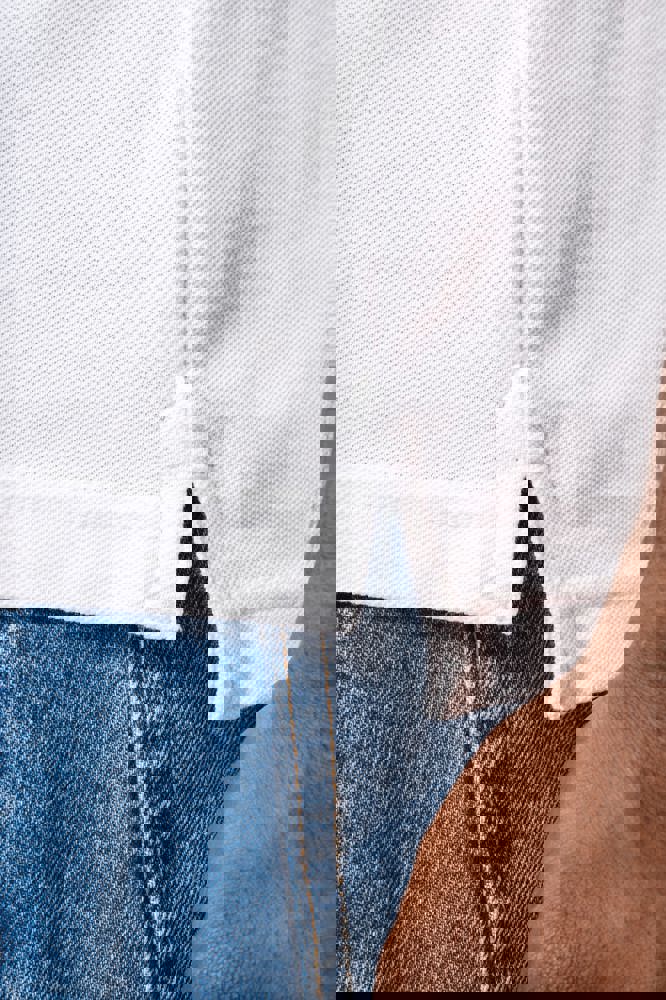100% katoen piqué. Kraag in rib met bies in contrastkleur aan de boven- en onderkant (behalve White/ Navy : geen contrast onder de kraag, alleen een dunne rode rand onder de sluiting). Nektape en zijsplitjes in contrastkleur. Fantasie knooplijst met 2 knopen. Mouwuiteinden in rib met bies in contrastkleur. Afwerking met dubbele stiksels aan de onderkant. De kraag is verstevigd aan de achterkant en kan omhoog of omlaag gedragen worden.