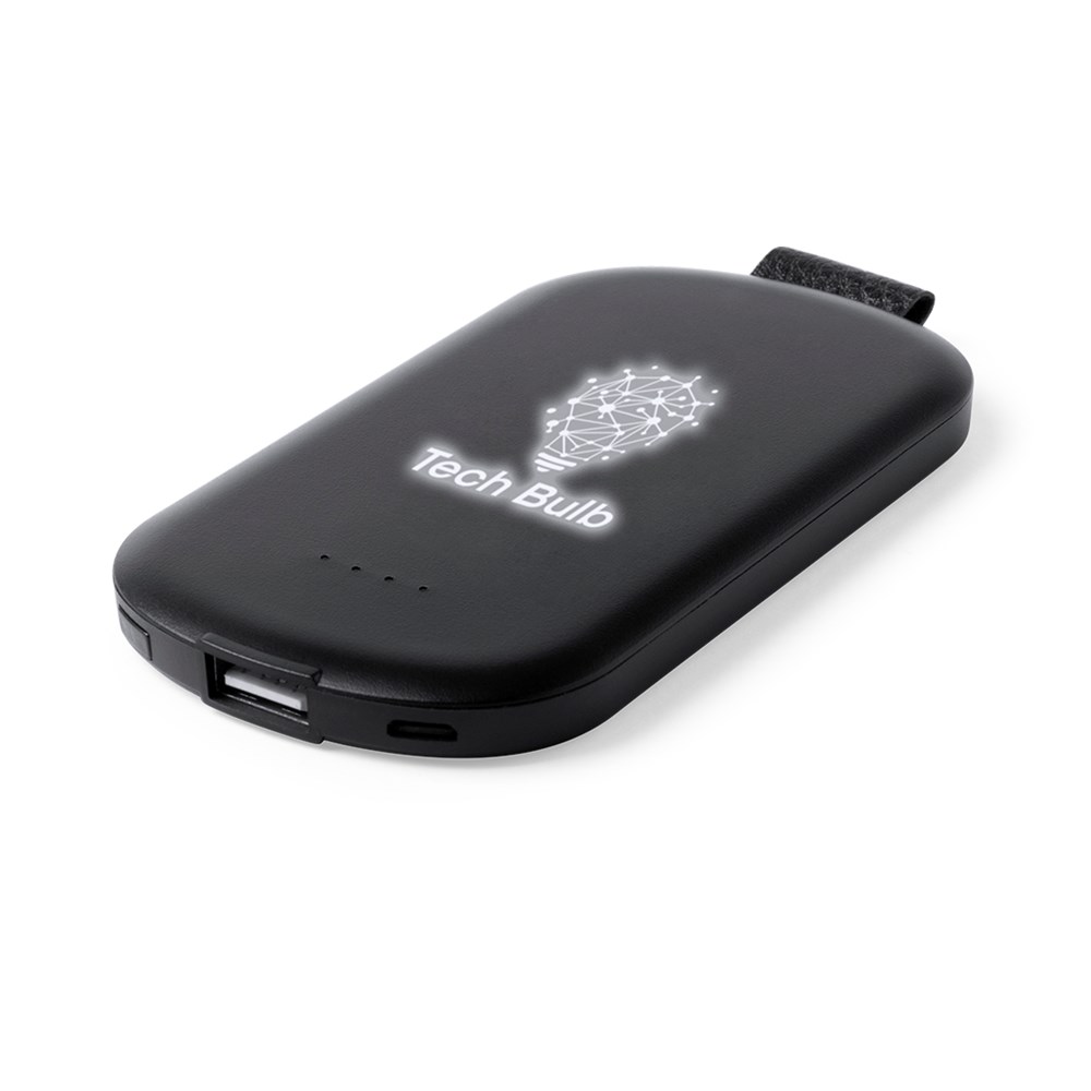Powerbank 2,500 mAh. Speciaal gemaakt voor lasergravering waardoor het ontwerp er mooi in wordt uigeligt. Door het LED licht in het apparaat. Met USB output en micro USB input kabel (bijgeleverd). Heeft brede print mogelijkheden, en wordt verpakt in een geschenkdoos.