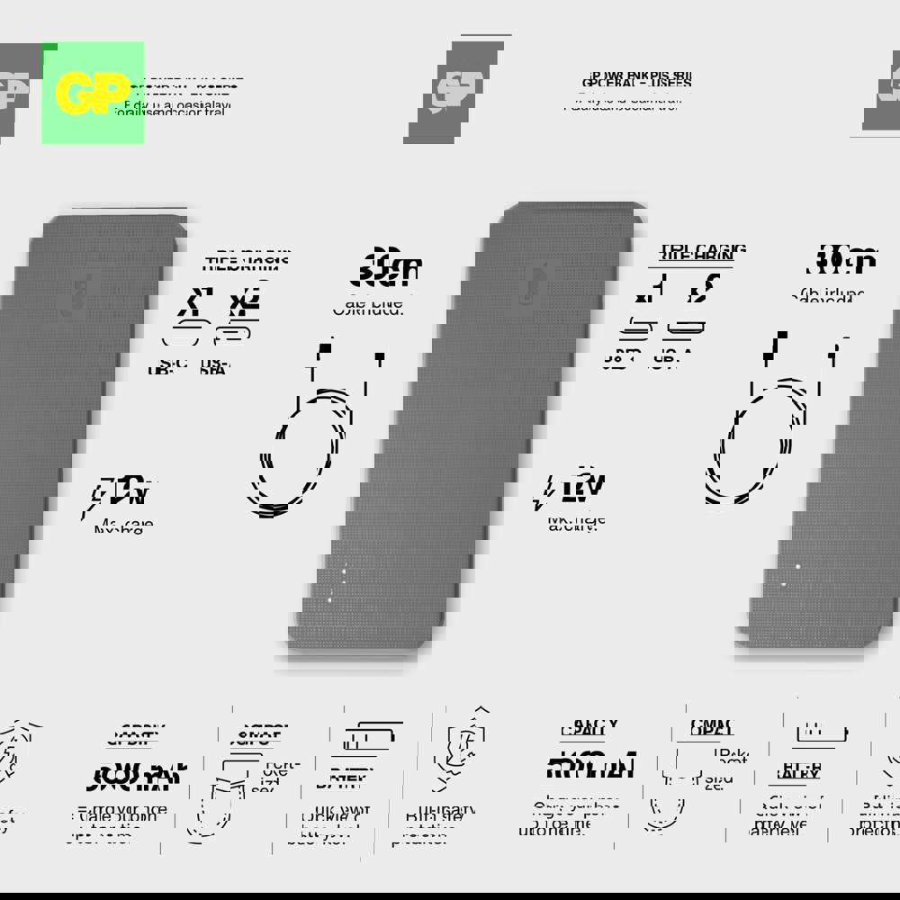 De GP PowerBank combineert betrouwbare stroomvoorziening met een stijlvol design. Met een capaciteit van 5000 kun je drie apparaten gelijktijdig opladen via 2x USB-A en 1x USB-C. De powerbank is uitgerust met een 8-voudige beveiliging voor veilig gebruik en een gegarandeerde lange levensduur. Ideaal voor professioneel en dagelijks gebruik.