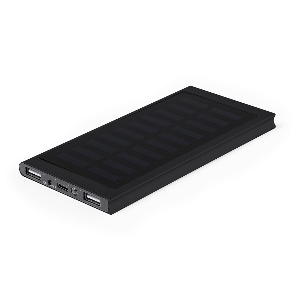 Externe hulpbatterij met zonne-energie en hoge oplaadcapaciteit -8.000 mAh-. Gemaakt van aluminium, met Type C in-/uitgangsconnector en 2 USB-uitgangen. Gepresenteerd in een individuele kraft-designdoos. Handleiding in het Engels en Spaans beschikbaar. De capaciteiten die worden weergegeven in al onze externe hulpbatterijen zijn reëel, ze bevatten allemaal niet-gerecycleerde batterijen van klasse A, met een levensduur van minstens 500 oplaadcycli, en voldoen aan de CE-voorschriften. Bovendien worden ze vervaardigd volgens de RoHS-normen en in overeenstemming met de volgende veiligheidseisen: Beveiligingssysteem tegen overbelasting van de powerbank. Compleet ontladingsbeveiligingssysteem, dat de duurzaamheid van de powerbank vergroot. Blokkeersysteem om kortsluiting te voorkomen. Systeem voor constante laadoverdracht, in overeenstemming met de capaciteit van het doelapparaat.