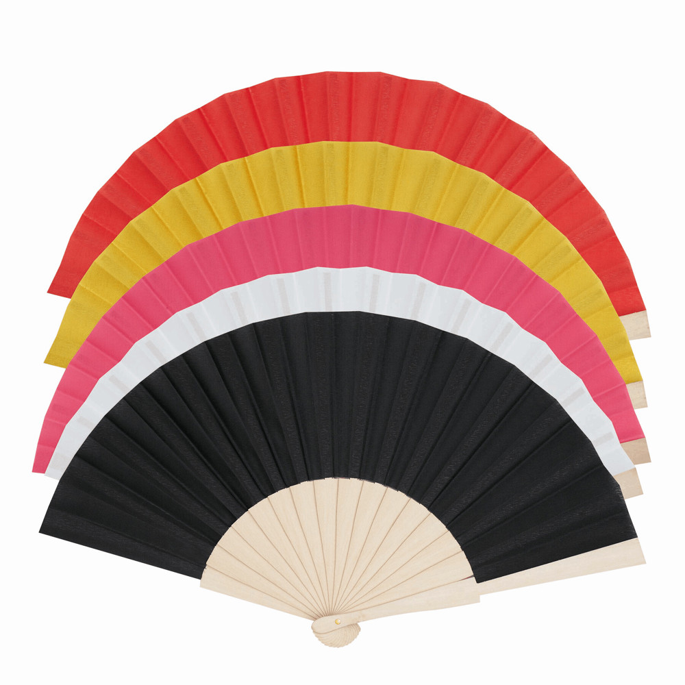 Opvouwbare waaier ECO COOL: stevig houten handvat en veerkrachtige houten ribben met bekleding...meer