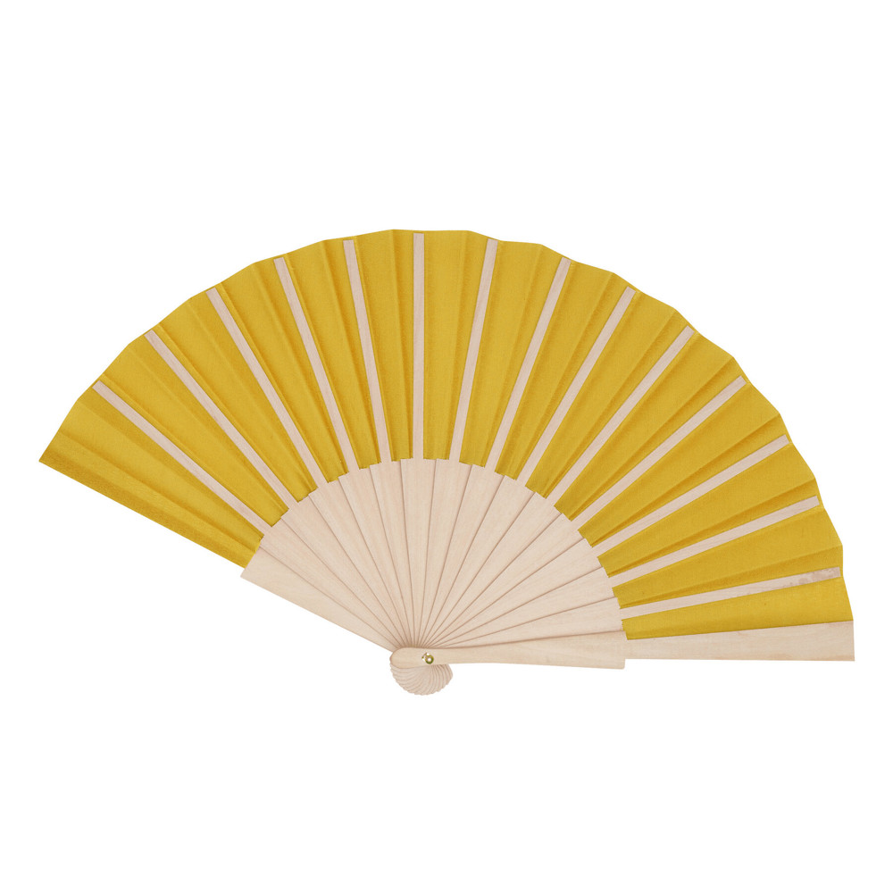 Opvouwbare waaier ECO COOL: stevig houten handvat en veerkrachtige houten ribben met bekleding...meer