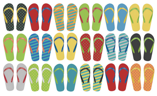 Aanpasbare strandslippers. Kies uw eigen gekleurde zool en gekleurde banden. Zolen van PE en banden van PVC. MOQ: 50 paar.